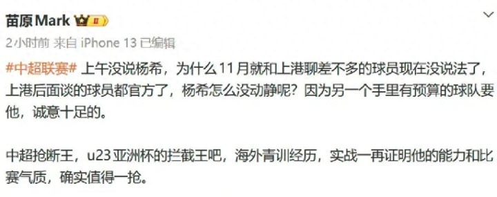 而对于海港而言,本已到手的球员“飞走了”,这也是一大遗憾。无论是球队还是球迷,失去了杨希,都需要重新调整补强计划。