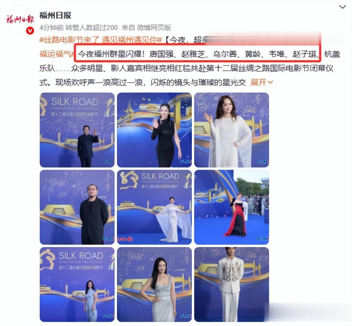 就在昨天,在福建举办的丝绸之路电影节已经落幕,一晚上的时间,亮相了很多位明星。
