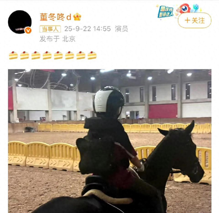 9月22日,董子健就在社交平台上晒出了女儿骑马的照片,高调地为女儿庆生。
