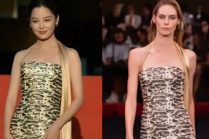 其实这一身礼服是很难驾驭的,身材胖了瘦了都不行,穿在超模的身上,虽然也很好看,但不及辛芷蕾穿在身上的“松弛感”。