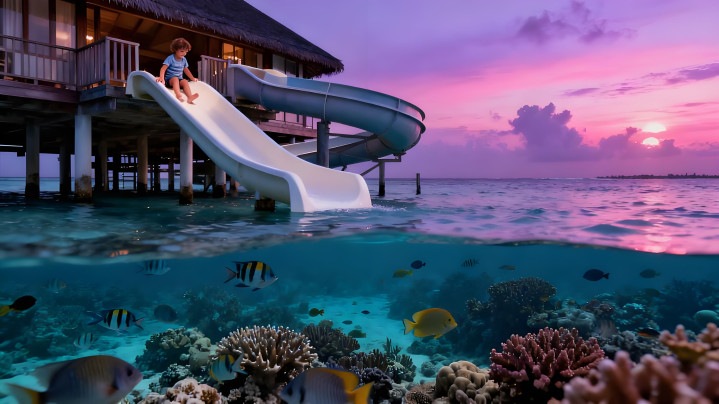 马尔代夫索尼娃贾尼岛在 “一岛一酒店” 升级计划中愈发迷人,水上滑梯直入澄澈海水,新建的星空观测台是观星绝佳处。乘坐水上飞机俯瞰,1192 个珊瑚岛如珍珠散落海面,退潮时的无人沙洲上,心形贝壳藏在细沙之中。最令人沉醉的是夜间浮潜,发光浮游生物在黑暗中绽放蓝绿色光点,仿佛闯入《阿凡达》的潘多拉秘境,难怪这里成为新人蜜月的首选之地。