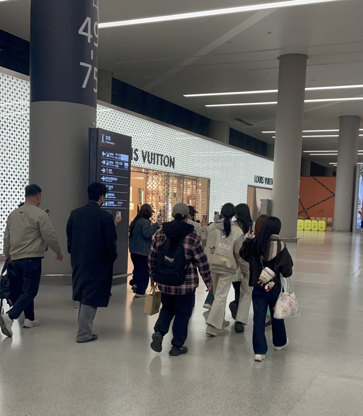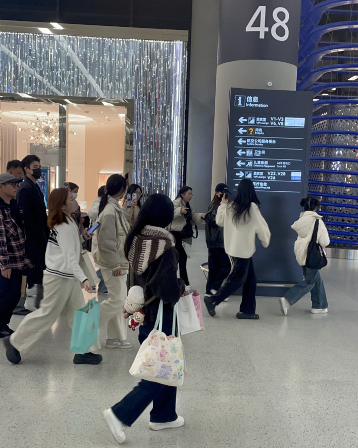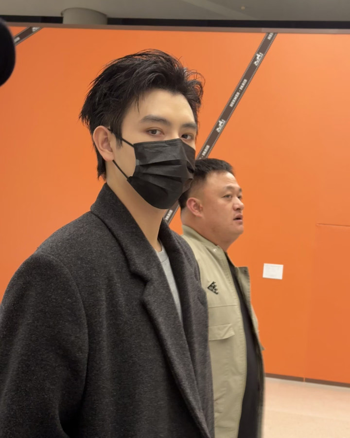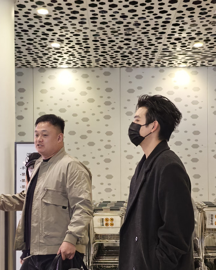 感觉他偶像包袱特别重,一副帅而自知的优越感,大晚上的赶飞机还化了很浓的烟熏妆,头发打了很多发胶,走路的时候趾高气扬眼睛一直往天上看,一分钟800个小动作,360度无死角的装酷耍帅,一小段机场的路都让他走出了巴黎时装周的感觉。