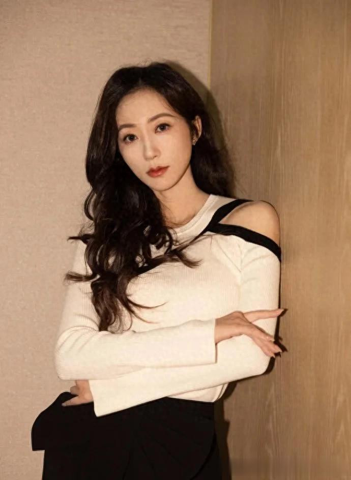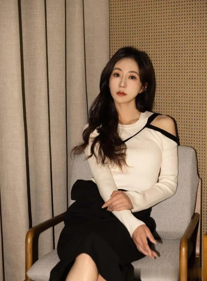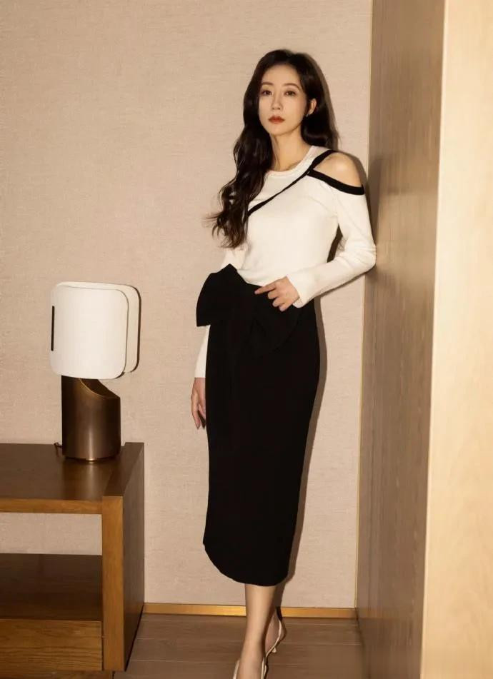 > - 韩雪的气质不一般! 穿白色针织衫+黑色半裙, 简约又高级!