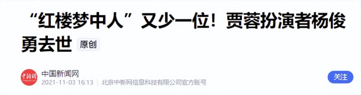 新京报——87版《红楼梦》中贾蓉饰演者杨俊勇去世,享年57岁